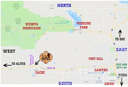 Located just three miles from the Wichita Mountains Wildlife Refuge entrance, the Venue at The Lazy Buffalo captures that rural feel. A paved bike lane joins the property and runs throughout the Wildlife Refuge. At less than a mile from the original Quanah Parker’s Star House and minutes from Lawton Fort Sill and historic Medicine Park, there's plenty to see and do nearby.